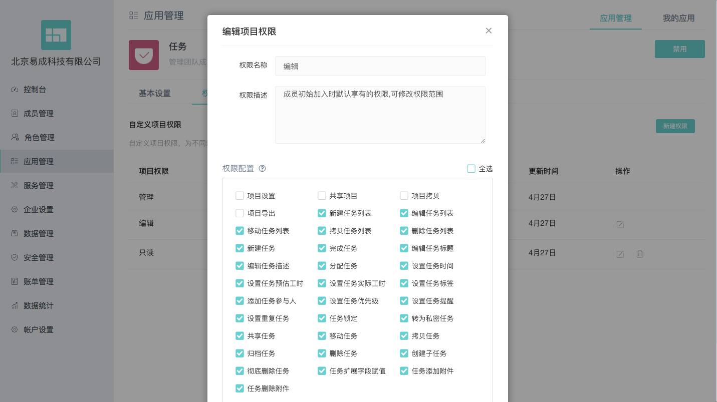 2.更精细的权限控制,自定义项目、日历、网盘操作权限;