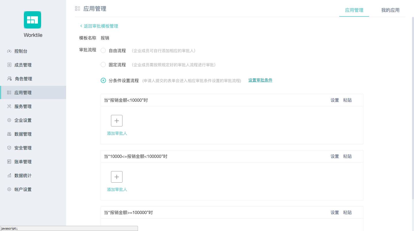 3.新增角色审批,分条件审批流程,让企业审批流程更可控。